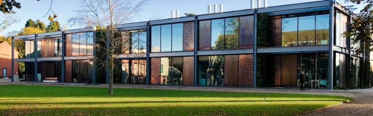 The structure combines a light steel frame with high-performance insulation, cladding and thermally efficient glazing. The 4,000m2 two-storey building features natural ventilation, photovoltaic panels, and ground source heat pumps to increase energy efficiency. The centres design complements the local environment while being sympathetic to its history and surrounding buildings. The light steel frame has been left exposed as part of the design feature, while the cladding is a mix of oxidised copper and large glass panels to enhance the light, modern aesthetic, with some of the panels set back to create open areas for outdoor learning.