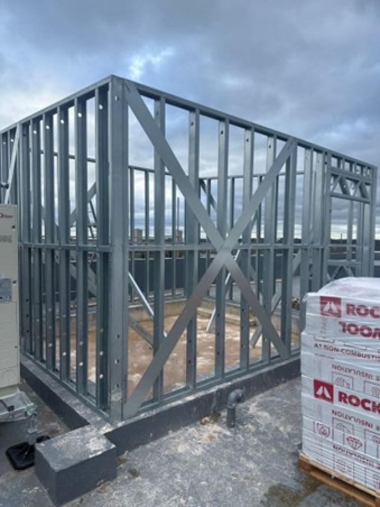The plant rooms for a large-scale build-to-rent development in Birmingham have been completed by Datum Group using a light steel frame solution. The plant rooms have been installed on the roof of the Sherlock Yard development, which is set to be completed in 2025.